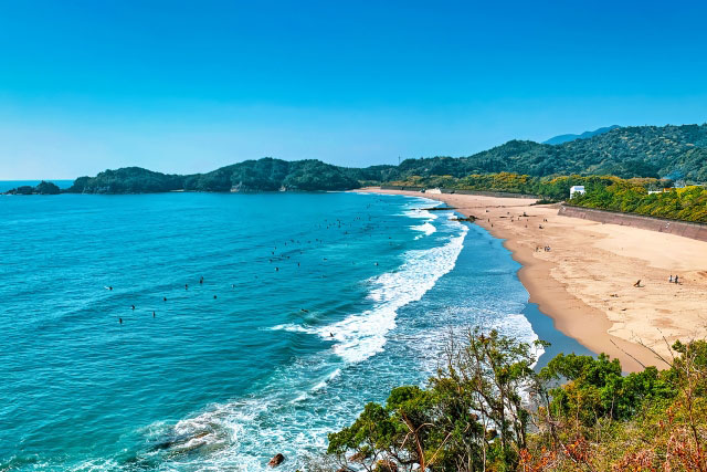 白い砂浜が約300メートルも続いており、波も穏やかであることから海水浴にも最適です。